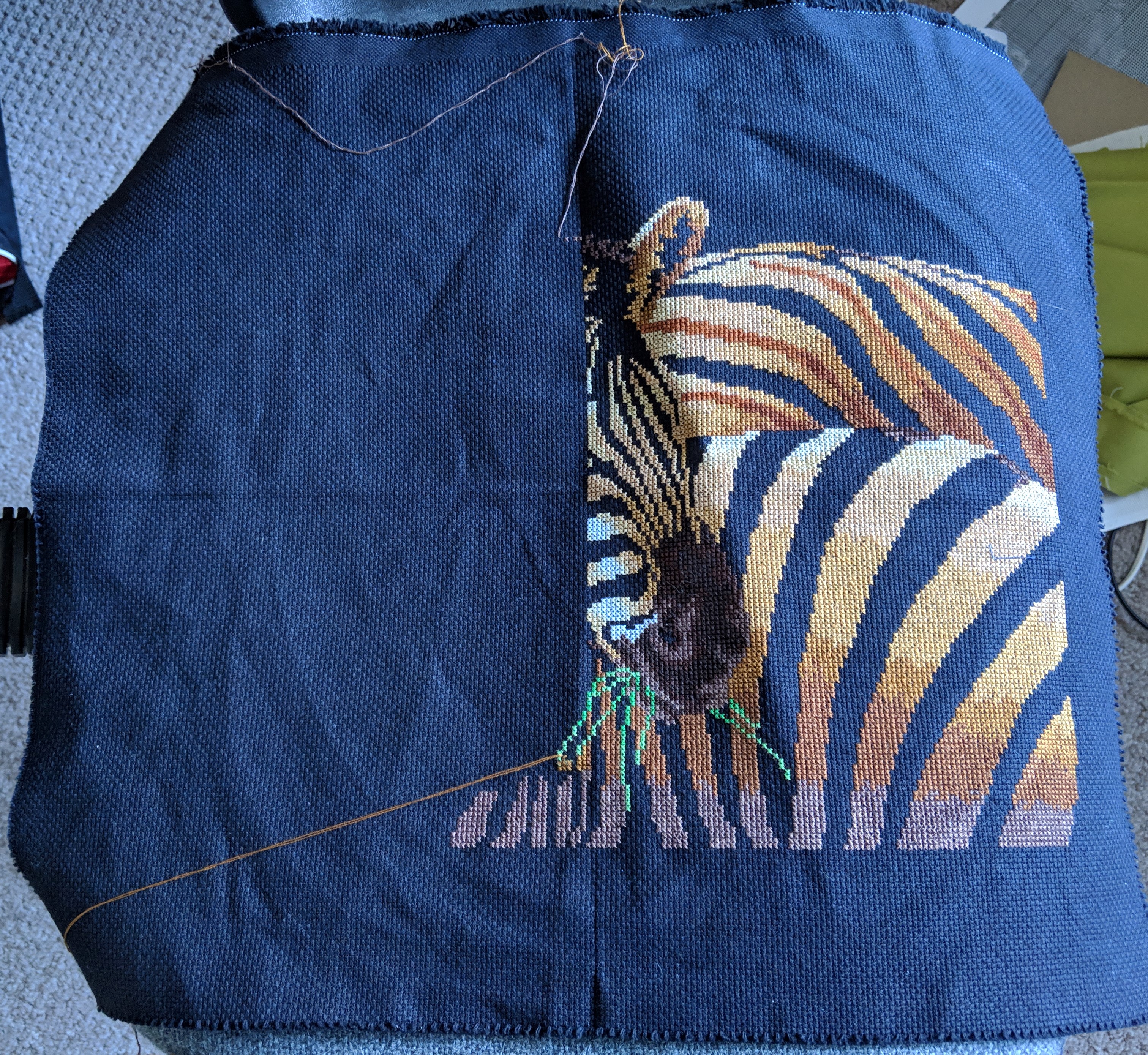 One of the joys of cross stitching is having the option to switch between a variety of projects. One of those projects for me is the Zebra Grande by Elsa Williams. Due to the way the pattern has been produced, it’s split in half and I’ve been clever enough to lose the second half of the pattern!
