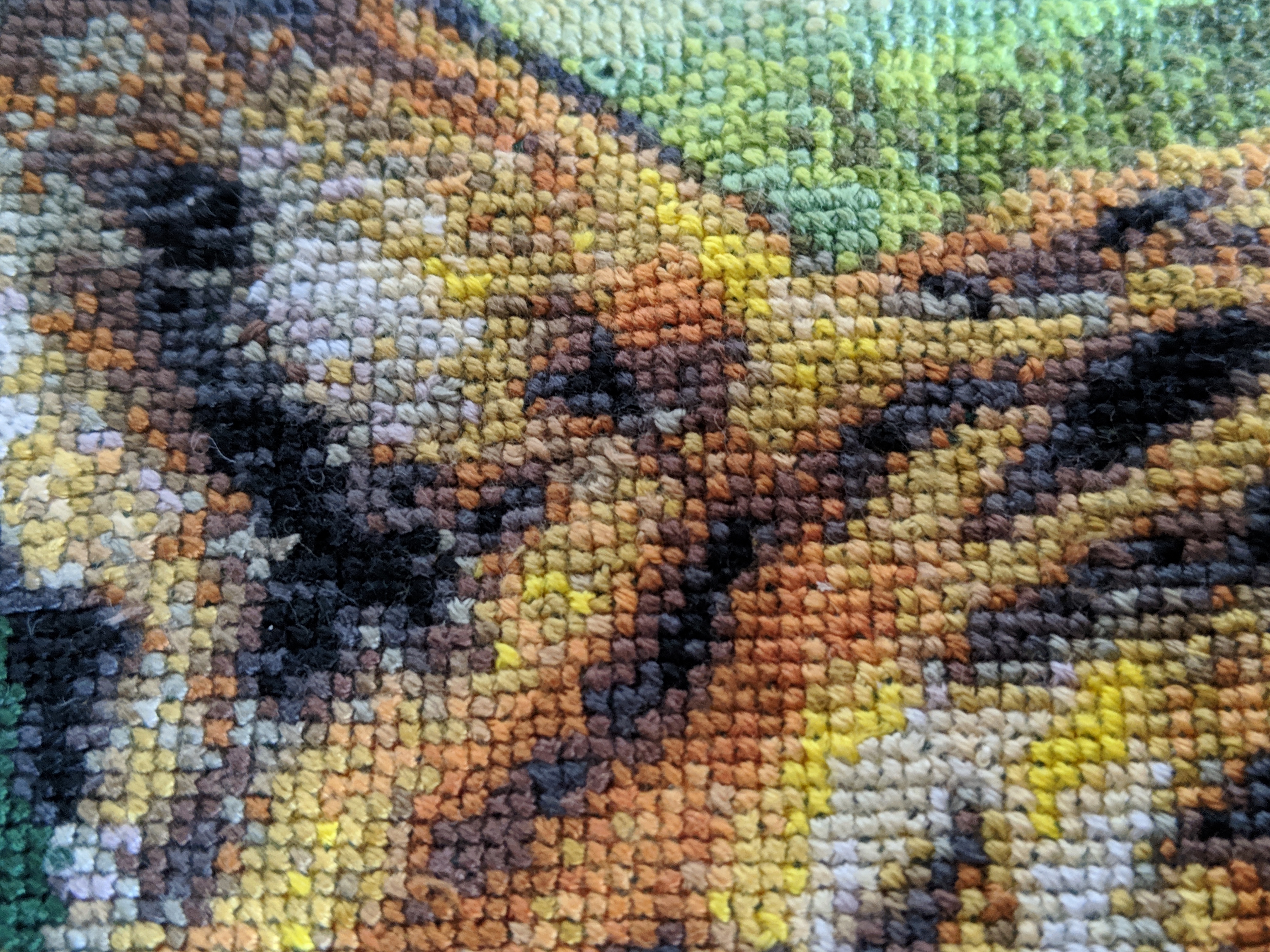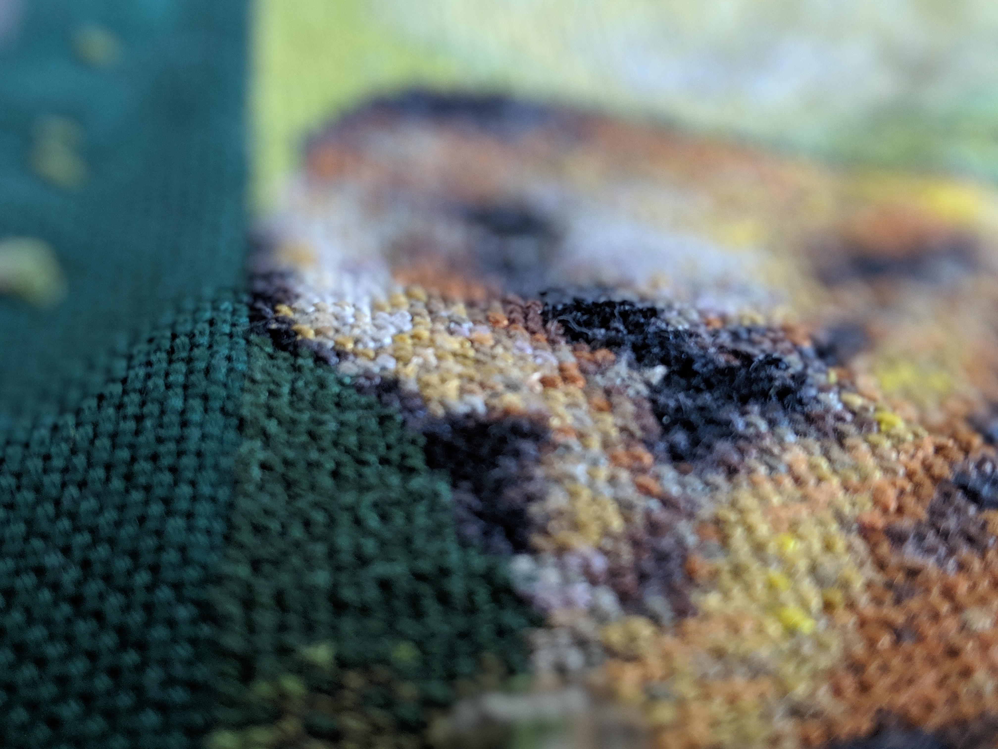 I have made attempts to try and stitch the second half of the Zebras using the colour photo of the finished product, but it’s not the same. A portion of the Zebras are cut off by the matting and framing, so I’m making some guesses which could wildly through out the finished piece.