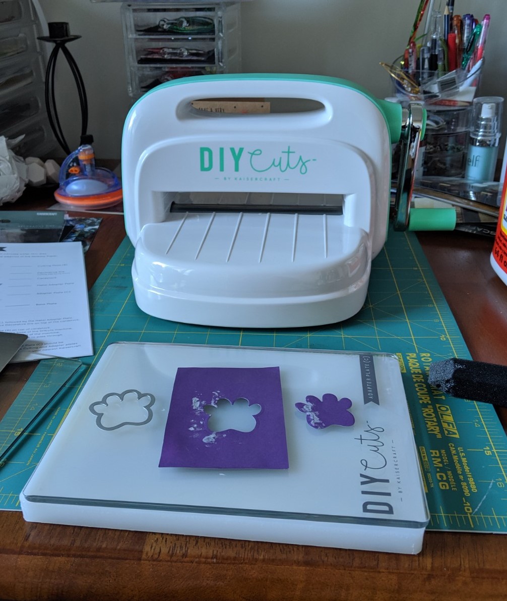 With all of this in mind, some of you may remember a post I did a few weeks ago about the ‘Top 10 Crafty Things I’m Crushing On Right Now‘ and at one point, I talked about the Kaisercraft sale, and how I was looking forward to playing around with DIY Cuts and the tools that come with it. Well, it arrived a few days after that post and over the weekend of 22nd and 23rd June 2019 I started playing around with the DIY Cuts using the paw print cutters and paper and Aida fabric.