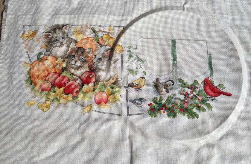 Personally, I’ve found the Country Threads patterns and kits by Fiona Jude to be absolutely awesome. The patterns are easy to read and they are comfortable size to work on. Meaning, it took me an average of three months to complete one of Country Threads patterns and that’s all the while working full time and in many circumstances, studying online part-time as well. The other thing that attracts me to the Country Threads designs is that there’s little to no backstitch and it’s a mix of full cross stitch and half stitch (aka tent stitch) and some patterns may require some French Knots.